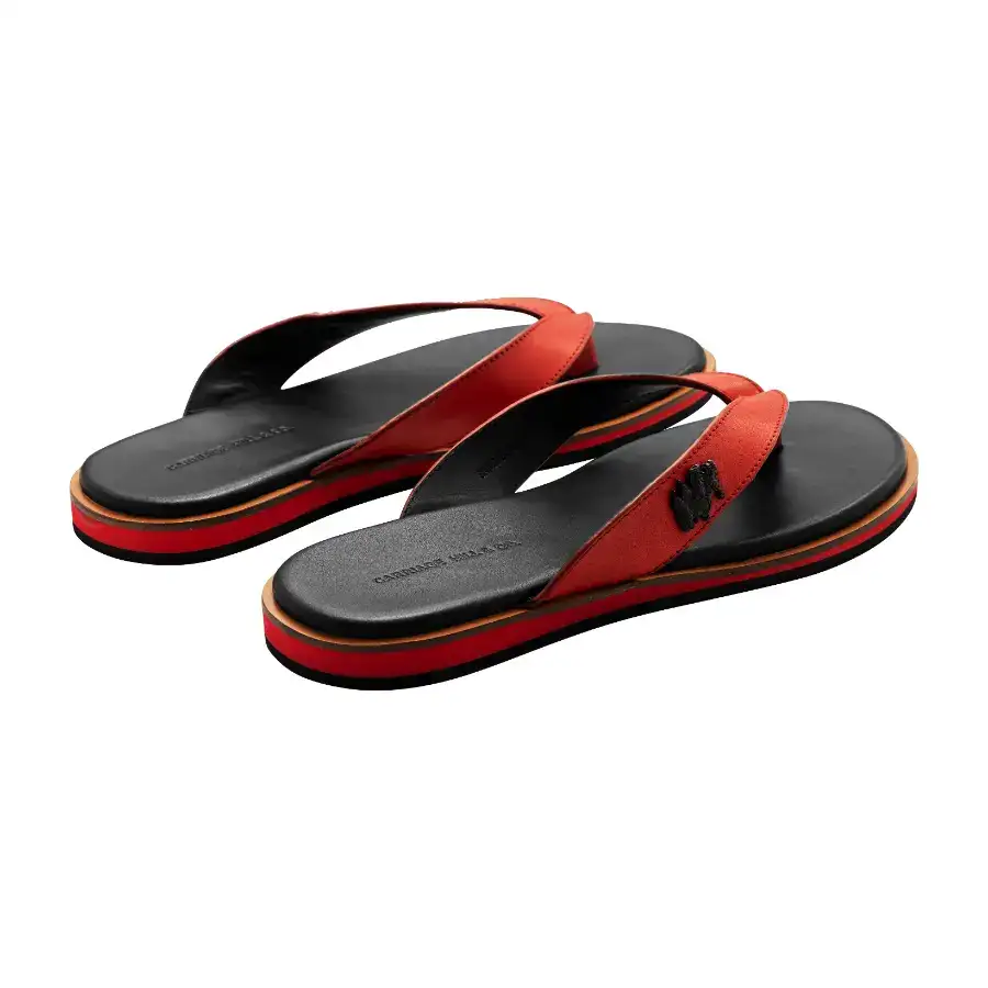 Flame Red premium sandals offer casual yet suave comfort for men and women. Made from genuine smooth calfskin leather, they are the perfect way to add sophistication to any summer style. Supportive soles are crafted from EVA and TPR to withstand your beach resort adventures, while the bouncy, cushioned lining provides extra comfort for your feet everywhere you go. Stitched with precision, they create a polished look even in leisurely settings. The Leeds Collection sandals are offered in a variety of colors to complement any ensemble.